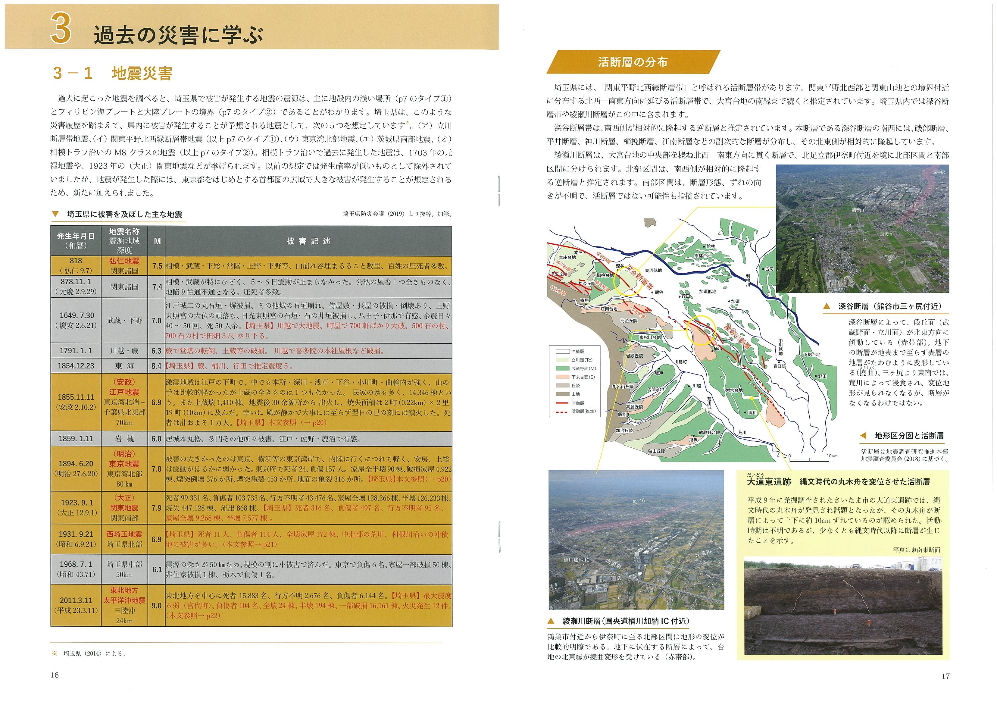 活断層の分布/平野の地形と液状化現象/弘仁関東地震/