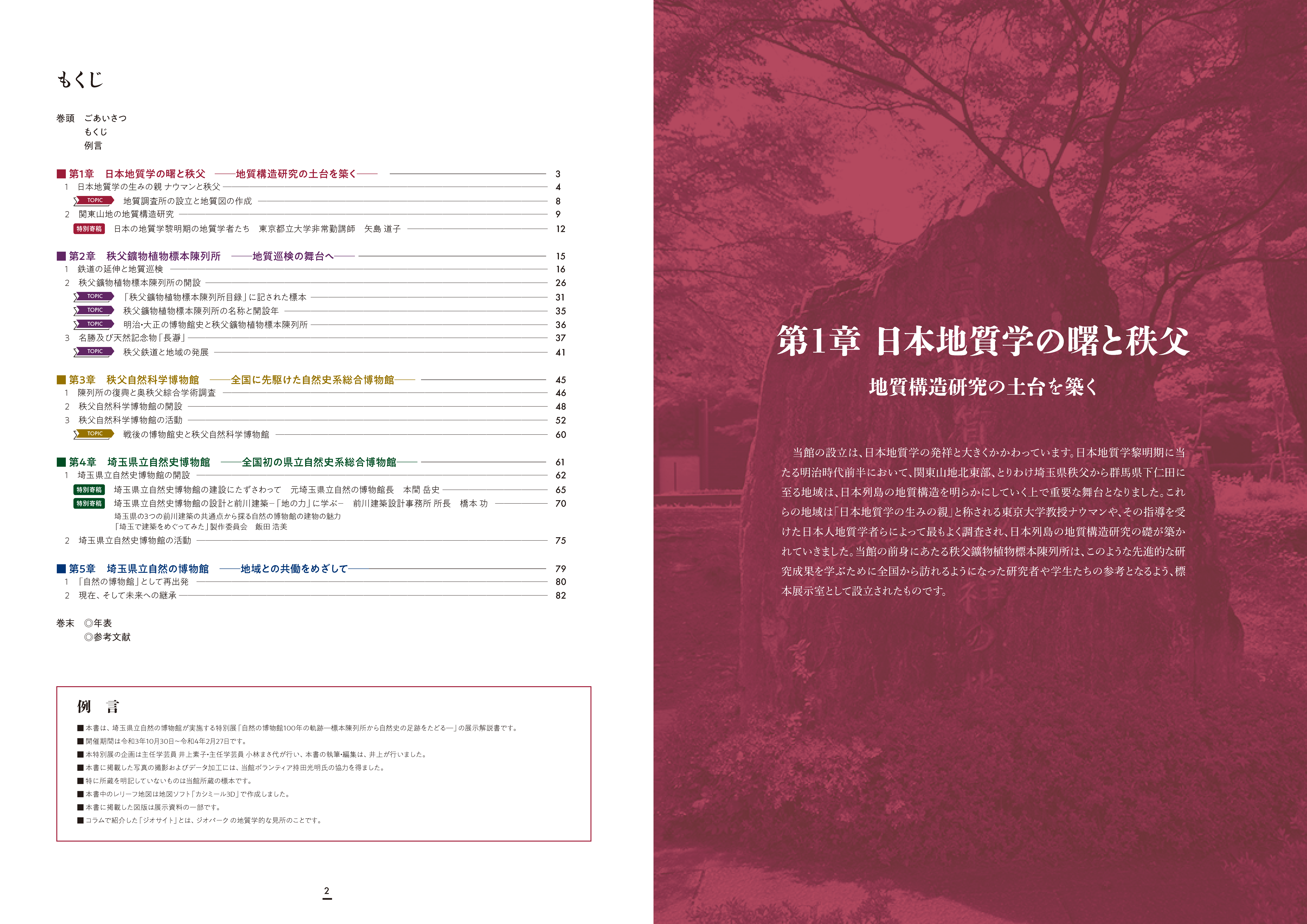 ①講演会「日本地質学の曙と秩父」 日本地質学の礎を築いたドイツの地質学者E.ナウマンが探求した日本列島の生い立ちは、今どのようにとらえられているのでしょうか。 その最前線を紹介します。 日時:2022年1月29日(土)13:00~15:30 場所:自然の博物館 講堂 参加費:無料(展示を観覧する場合は別途観覧料が必要です。) 申込期間:申し込みは終了しました。 申込方法:当HPのイベントページから電子申請をするか、往復ハガキに必要事項(参加希望者指名、住所、電話番号、年齢、一緒に参加を希望される方の氏名、年齢)を記入のうえ、お申込みください。 なお、本イベントは先着順ではありません。申し込み多数の場合は抽選となります。抽選結果は申込期間終了後5日以内に通知いたします。