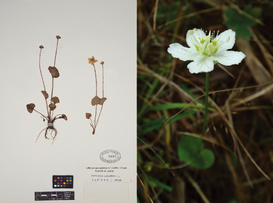 北海道から九州の日当たりのよい湿地に生える多年草。8~10月に白い花を咲かせ、花茎には葉を1つだけつける。花の形が梅鉢紋に似ることから名づけられたとされている。2011年の県レッドデータブック植物編改定時の調査では生育が確認できていなかったが、その後生育地が発見された。過去には寄居町のような標高の低い湿地でも生育が確認されていたが開発により消滅し、現在は亜高山帯の草地にわずかに残るのみ。 |