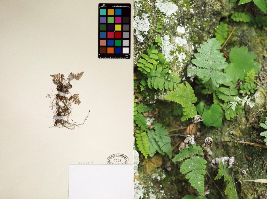 石灰岩上に生育する夏緑性のシダ植物で、国内では群馬県、埼玉県、東京都にのみ分布する。県内で現存する生育地は2地点のみで、温暖化による乾燥化、石灰岩の採掘、自然遷移、ロッククライミングなど様々な要因によって減少している。タイプ産地は秩父地域で、横須賀製鉄所の医官として日本に滞在していたサヴァチェ氏によって採取されている。国内希少野生動植物種に指定されている。 |
