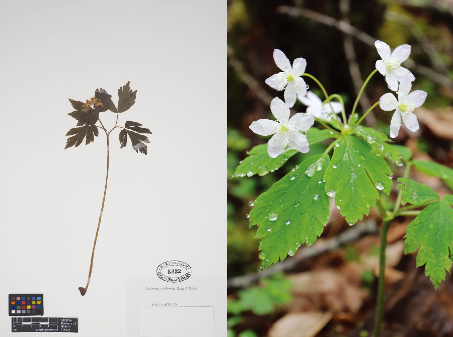 温帯から亜寒帯の夏緑樹林に生える多年草で、5~6月に花を咲かせる。花弁はなく、白い花びらのように見えるものはがく片。県内では秩父地域の山地から亜高山に生育するが、近年シカの食害により激減しており、開花個体もほとんど見られなくなっていることから、絶滅の危険性が極めて高いと考えられている。 |